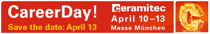 We are planning to combine our annual specialist highlight with the ceramitec 2018, the leading international ceramic event. The merger of the meetings provides the unique possibility of inspiring a broad international audience for our topics. Accordingly, we will create an attractive and eventful programme by using the exhibition forum for some of our event modules and by offering topic-related guided tours of the exhibition halls.